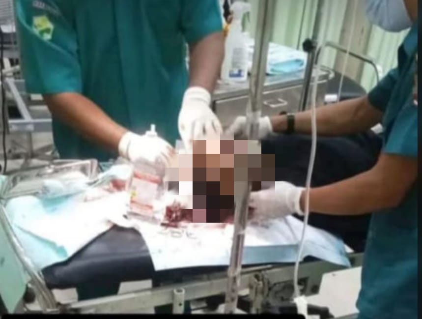 Dari dokumentasi foto yang diterima, tampak korban tergeletak di atas ranjang dan tengah mendapatkan perawatan dari petugas medis di sebuah ruangan.
