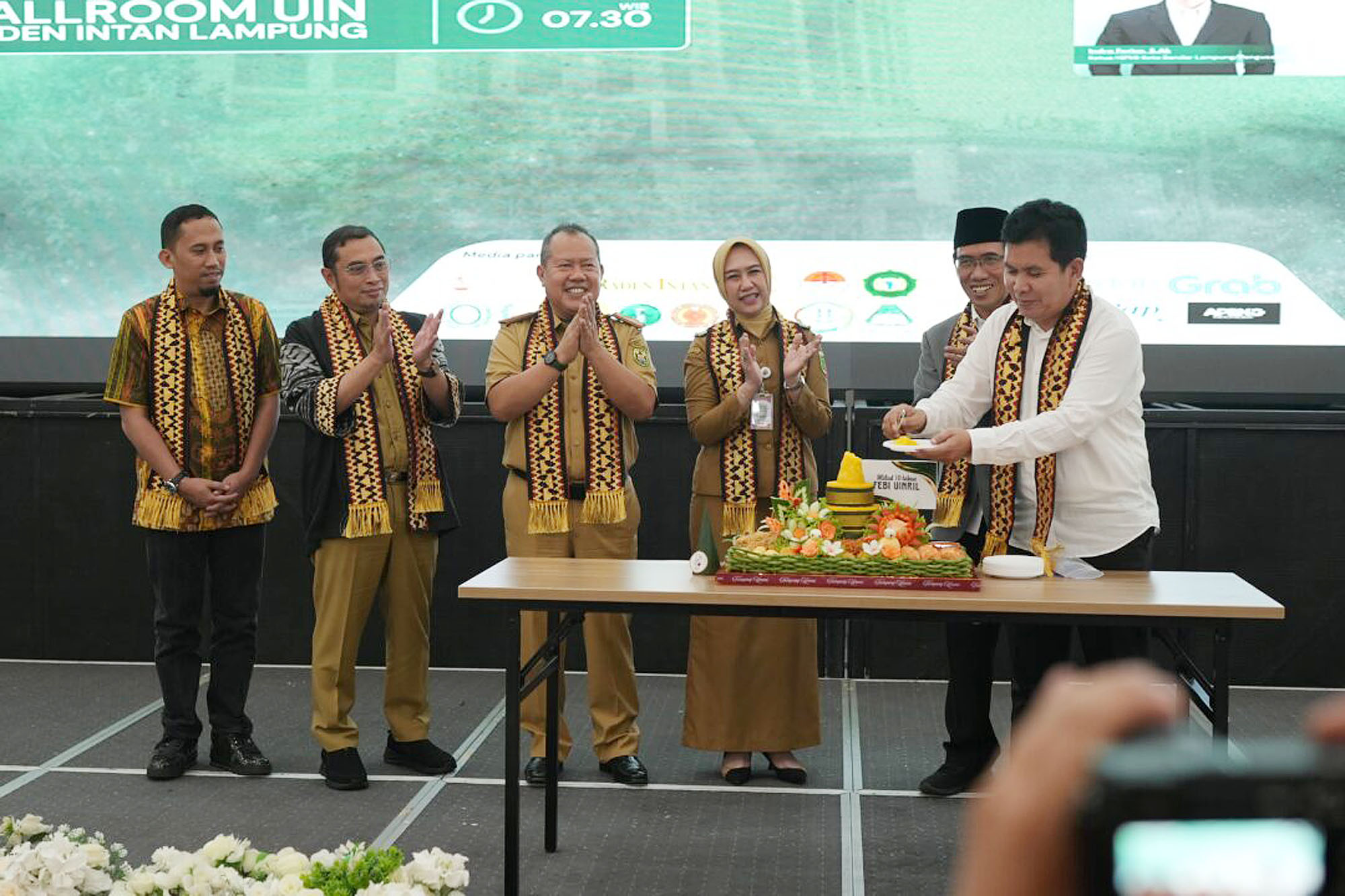 Opening ceremony ditandai pemotongan tumpeng oleh Dekan FEBI, Prof. Dr. Tulus Suryanto, M.M., Akt., C.A. didampingi Wakil Rektor I Prof. Dr. Hi. Alamsyah, M.Ag., dan para narasumber. Hadir sebagai narasumber pada kegiatan ini yaitu Kepala Biro Perekonomian Setda Provinsi Lampung Rinvayanti, S.E., M.T. mewakili gubernur Lampung; Sekretaris Kota Bandarlampung Iwan Gunawan, S.P., M.A. mewakili wali kota; Kepala Dinas Pariwisata dan Ekonomi Kreatif Provinsi Lampung Bobby Irawan, S.E., M.Si.; serta praktisi bisnis sekaligus fasilitator, Indra Fareza, S.Ak. dan Resman Kadapi, S.H., M.H.