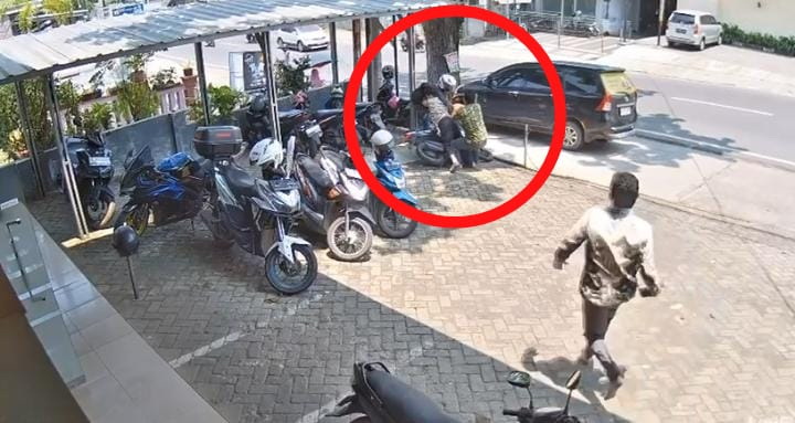 Berdasarkan rekaman kamera pengawas (CCTV), tampak dua pelaku terlibat aksi tersebut. Satu pelaku menunggu di atas motor, sementara rekannya mencoba membobol sepeda motor matic yang sedang terparkir.