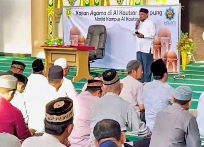 BANDARLAMPUNG - Yayasan Al Kautsar melalui Pengajian Al Kautsar Lampung (Kalam) kembali menggelar pengajian. Pengajian kali ini mengangkat materi fikih teknologi. Para guru dan karyawan Al Kautsar hadir dalam kegiatan pengajian tersebut.