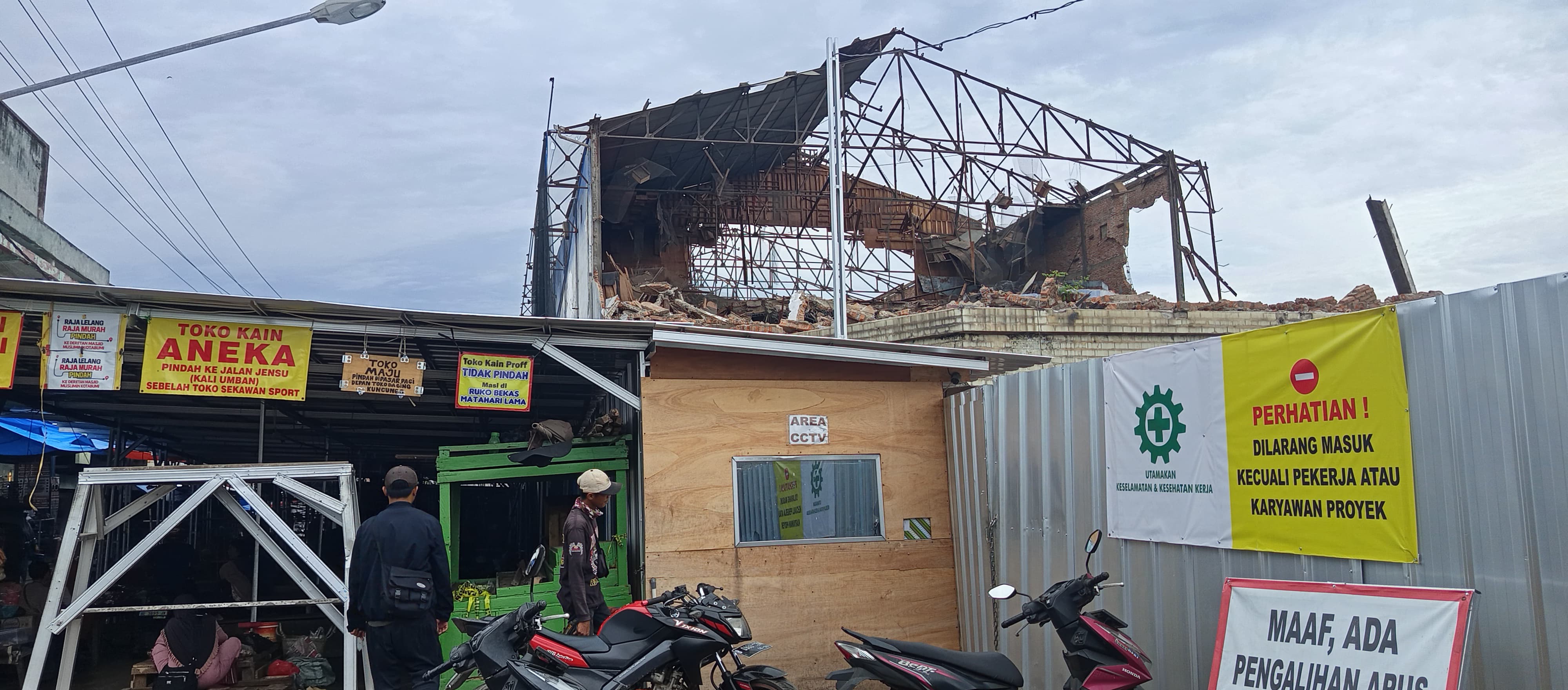 Puluhan Kios Sementara di Pasar Dekon Kotabumi Tertimpa Material Revitalisasi