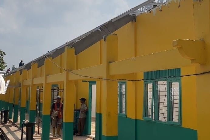PROGRAM REVITALISASI: Para pekerja sedang merehabilitasi 13 ruang kelas SMAN 1 Punggur, Lampung Tengah.--FOTO RNN