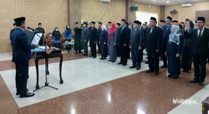 Sebanyak 47 pejabat dilantik dan diambil sumpah jabatannya di Aula Utama Pemkab Pringsewu, Jumat (17/10).
