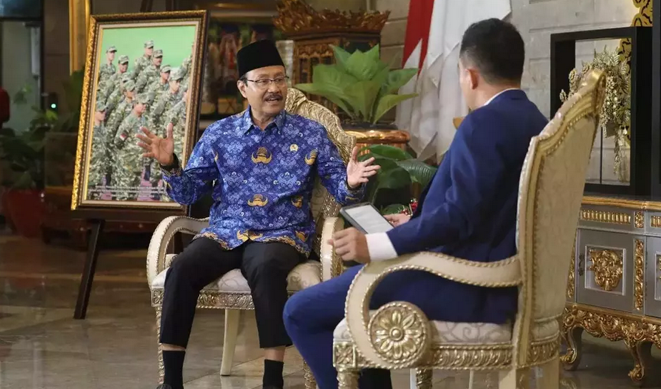 WAWANCARA: Menteri Sosial Saifullah Yusuf atau Gus Ipul saat wawancara bersama Beritasatu TV di Jakarta, Jumat (17/10). -FOTO BERITASATU-