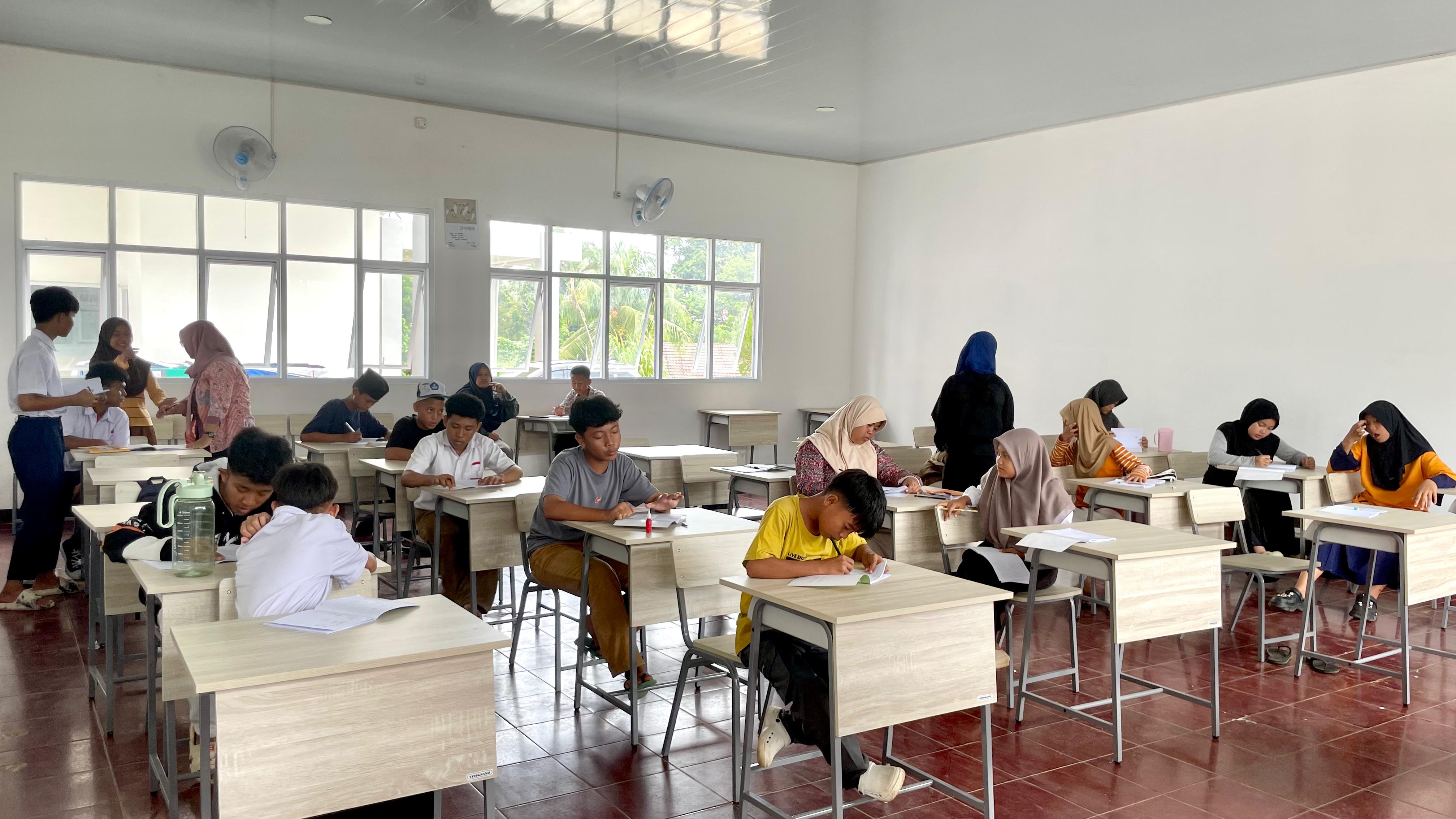 SERIUS BELAJAR: Para siswa Sekolah Rakyat Terintegrasi 35 Bandarlampung jenjang SMP serius belajar pada Kamis (23/10).--FOTO MK-LIA/RLMG