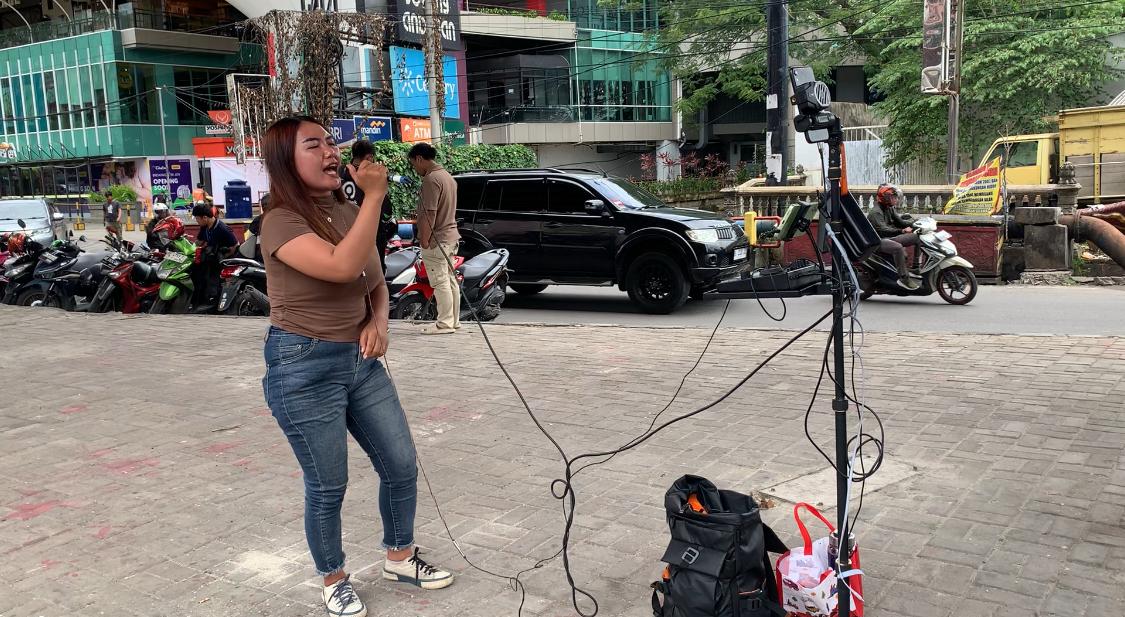 LIVE: Kegiatan live TikTok sambil bernyanyi di pinggir jalan. - FOTO INDRI SEPTIA PARADILA-