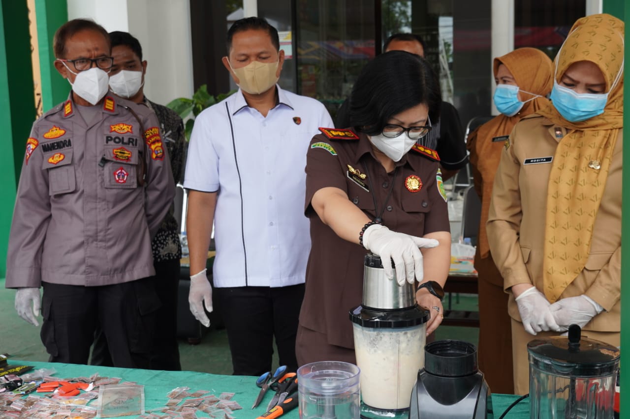 “Barang bukti narkotika dan psikotropika kami musnahkan dengan cara diblender bersama cairan kimia, sedangkan barang bukti lain dihancurkan menggunakan mesin penghancur atau dibakar hingga tidak dapat digunakan kembali,” ujar Neneng.