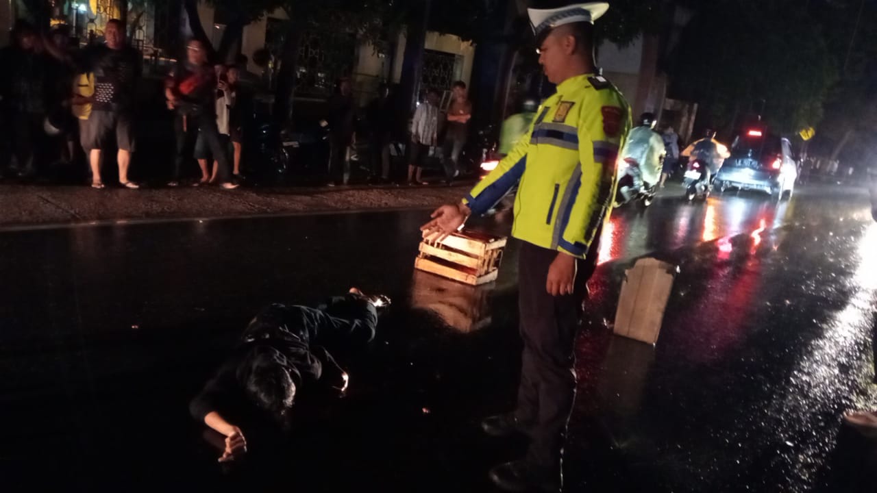 Salah satu korban terlihat tergeletak di tengah jalan dengan posisi tengkurap di lajur berlawanan arah.