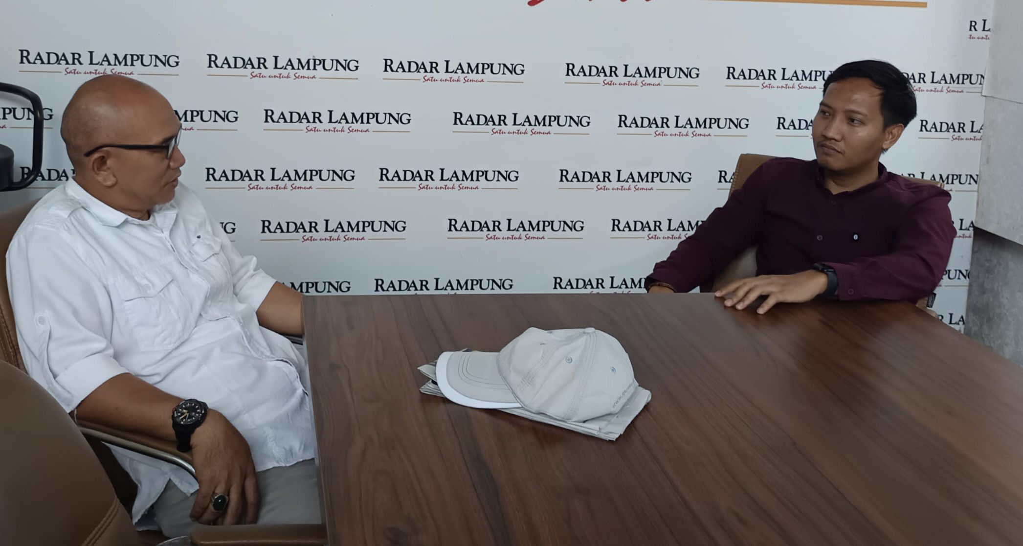 BERI PENJELASAN: Manager Public Affairs Tol Bakter, M. Alkautsar (kanan), di Graha Pena Lampung, Jumat (21/11). -Dedi Tornado-